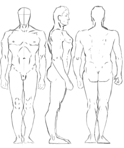 人体の比率。これをしっかりと覚えないと話にならんと思うので何度も描いて、覚えていきたい。